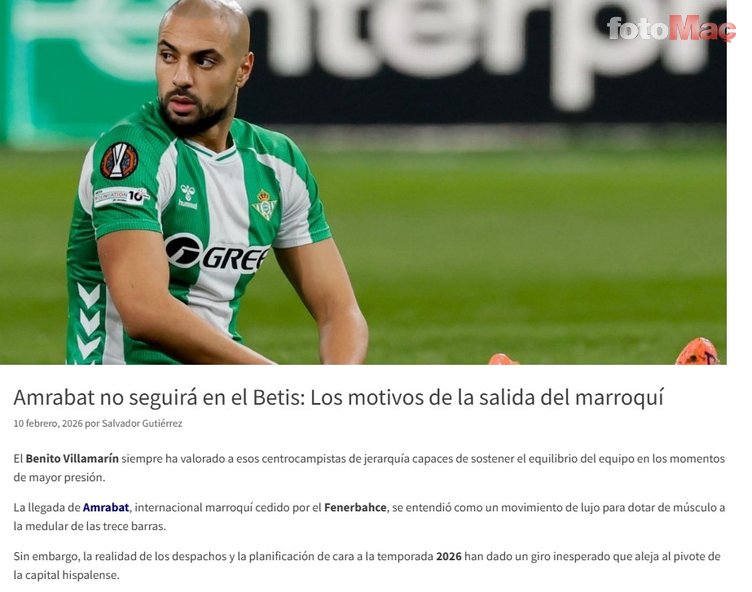 Ficherio kaynaklı habere göre; Real Betis, Sofyan Amrabat’ın bonservisini almayacak.