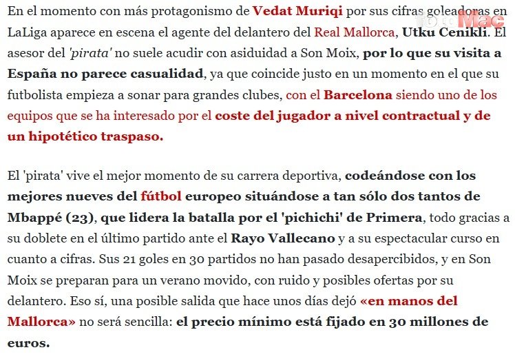Ultima Ora kaynaklı haberde; Mallorca’nın Vedat Muriqi için 30 milyon Euro istediği belirtildi.