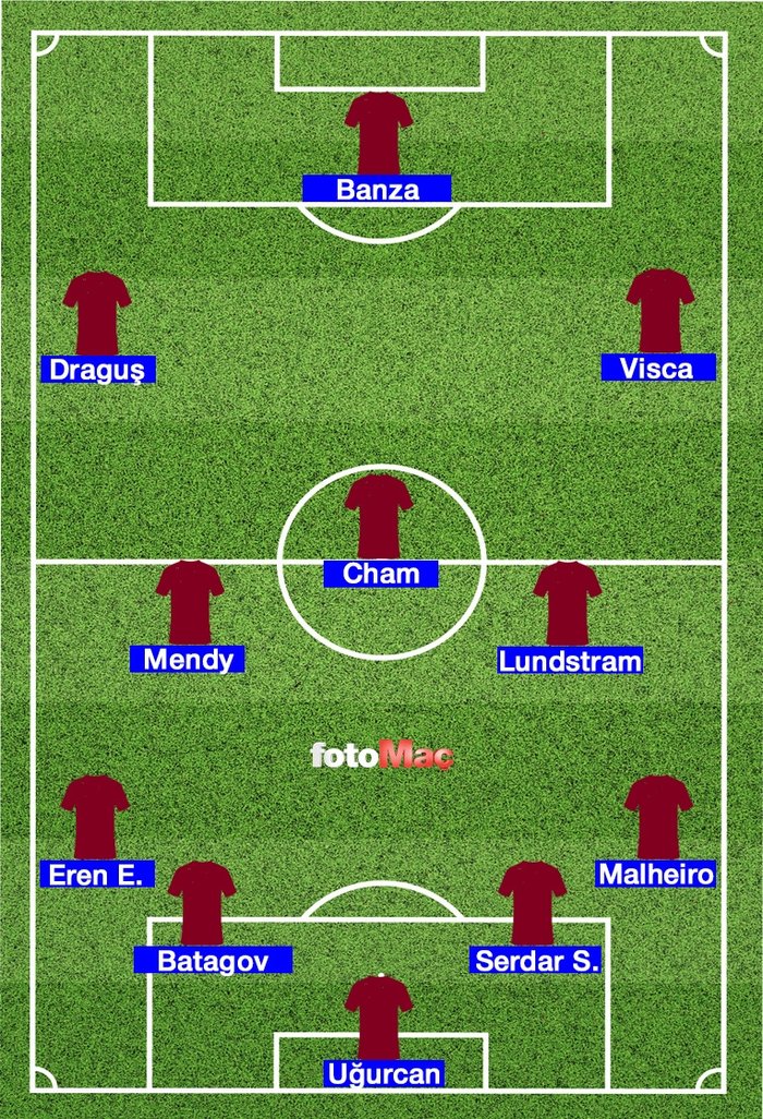Trabzonspor: Uğurcan Çakır, Serdar Stçı, Batagov, Malheiro, Lundstram, Mendy, Visca, Cham, Eren Elmalı, Banza, Draguş