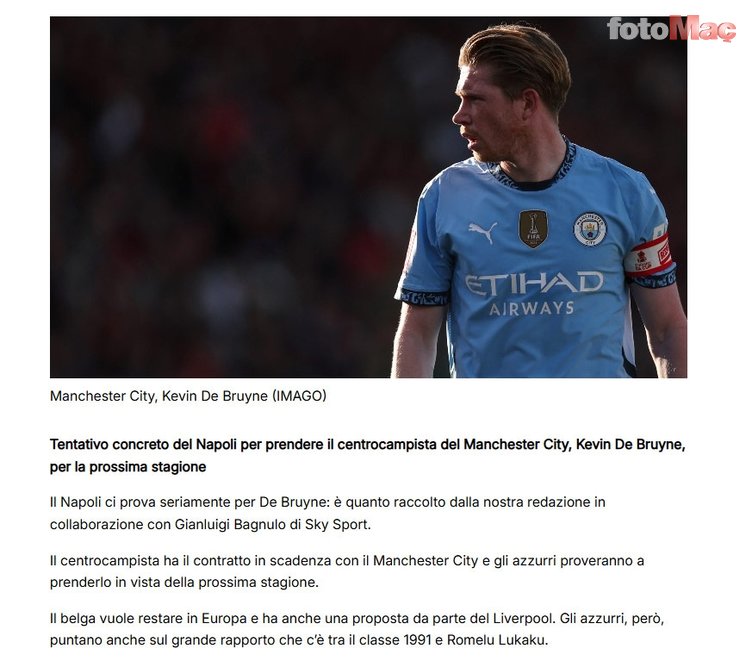 Öte yandan önümüzdeki sezonun transfer çalışmalarını sürdüren Galatasaray, gündemine Manchester City’nin yıldızı Kevin De Bruyne’yi gündemine almıştı.