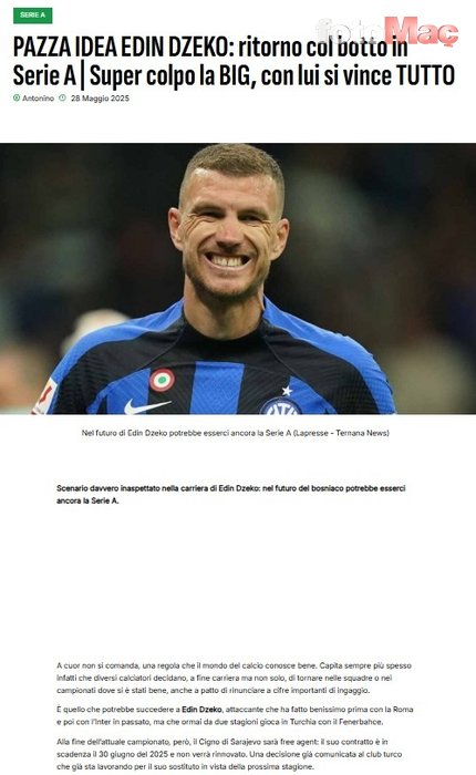 Ternana News kaynaklı haberde Fiorentina’nın Edin Dzeko’ya talip olduğu belirtildi.