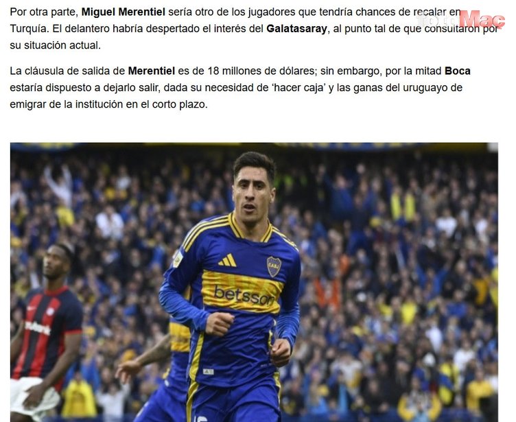 Öte yandan Miguel Merentiel’in serbest kalma bedelinin 18 milyon Dolar olduğu lakin Boca Juniors’ın, para kazanma isteği göz önüne alındığında 9 milyon Dolar’a oyuncuyu bırakabileceği aktarıldı.